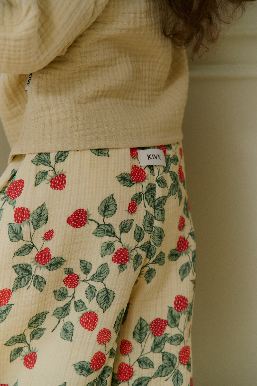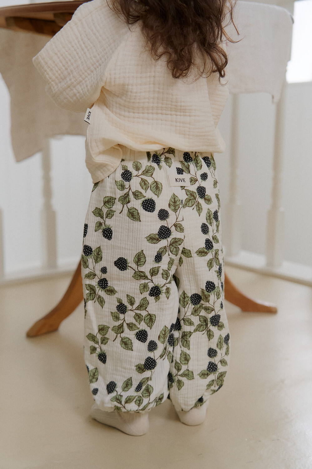 어디에도 볼 수 없는 KIVE만의 자체 제작 원단에 오리지널 일러스트를 더한 베리가든 팬츠입니다.