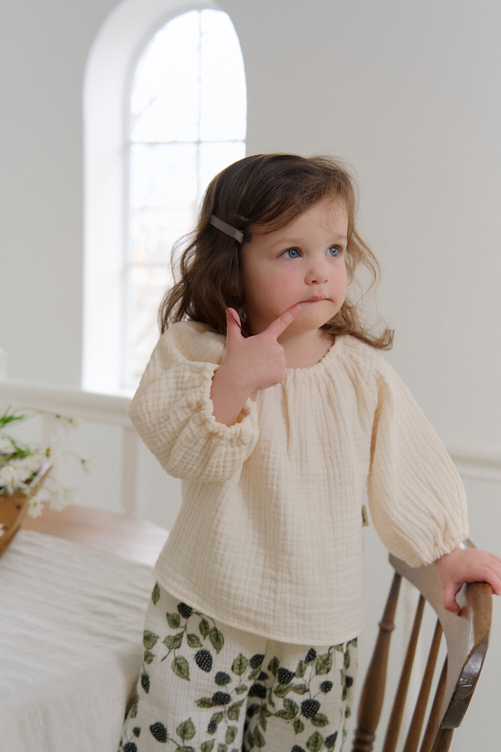 바이오 가공 워싱을 거친 3중 골지 거즈 소재로, 자연스러운 빈티지 무드와 편안한 착용감을 담았습니다.