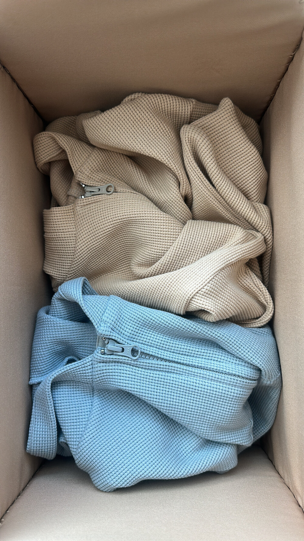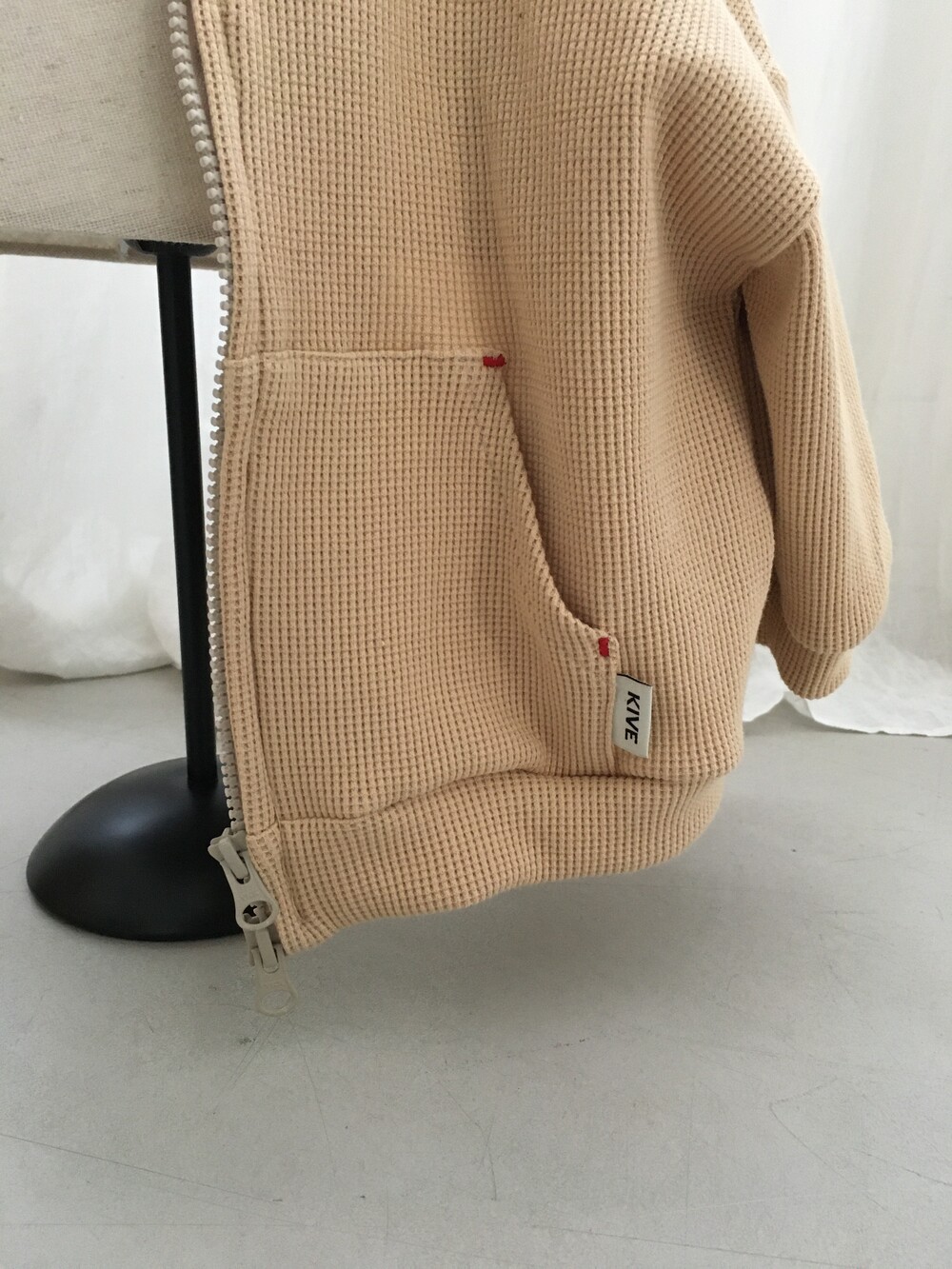 YKK 투웨이 지퍼를 염색하여 사용해 위아래 실용성을 높였고, 가벼운 와플 원단으로 제작되어 여름철 에어컨 아래에서도 가볍게 걸치기 좋은 아이템입니다.