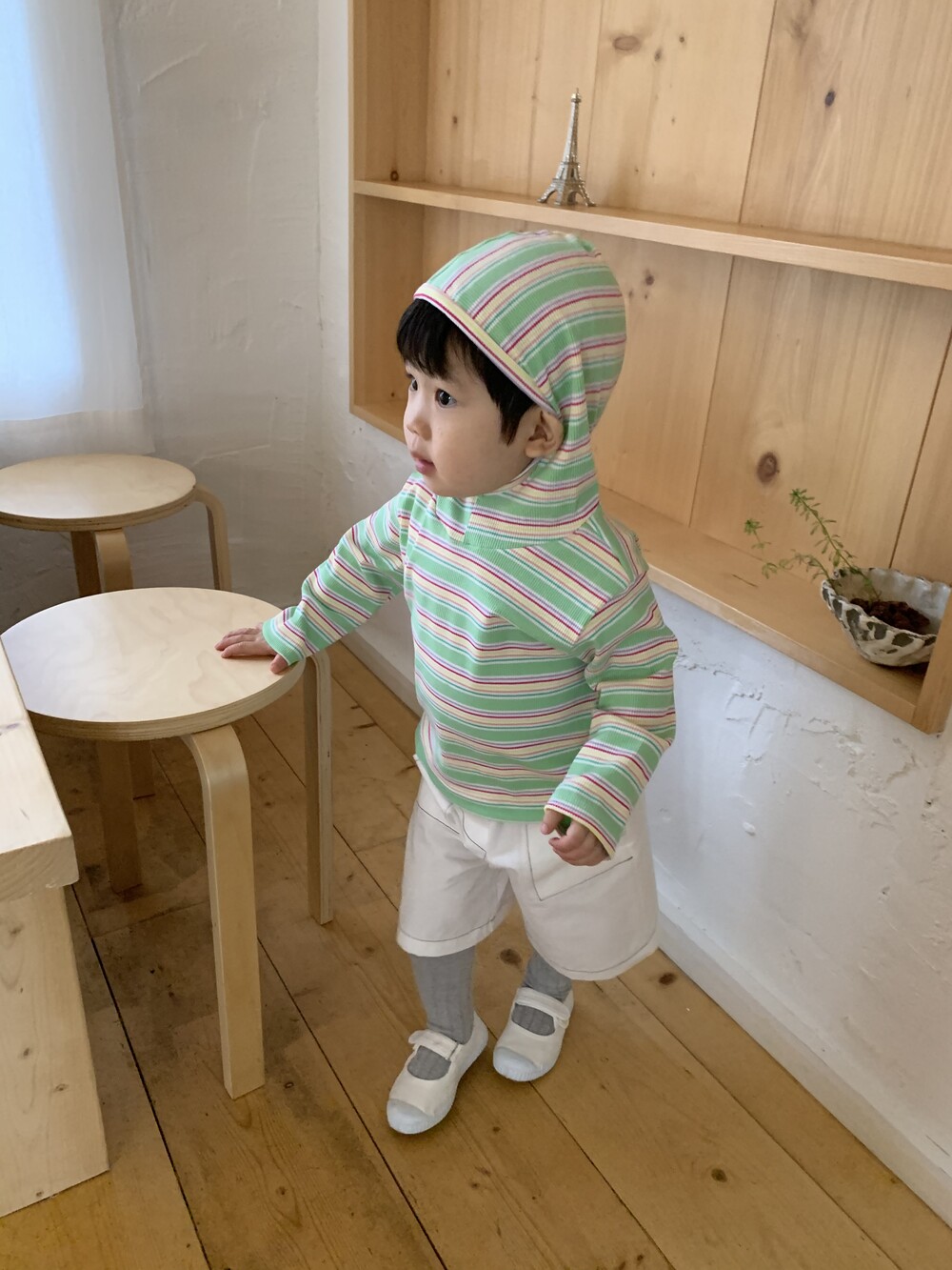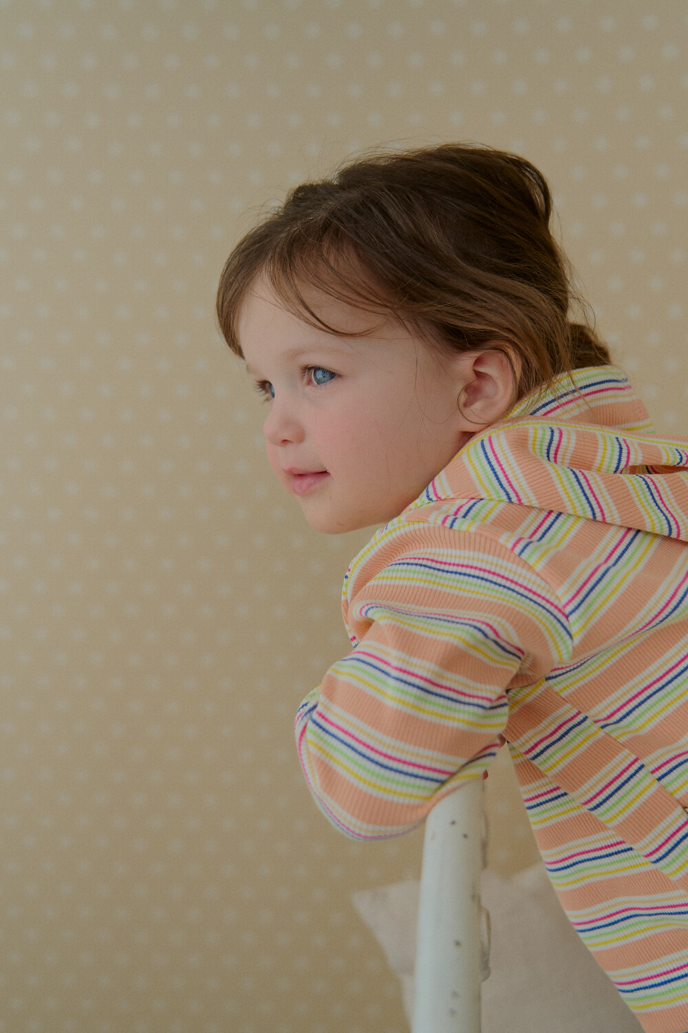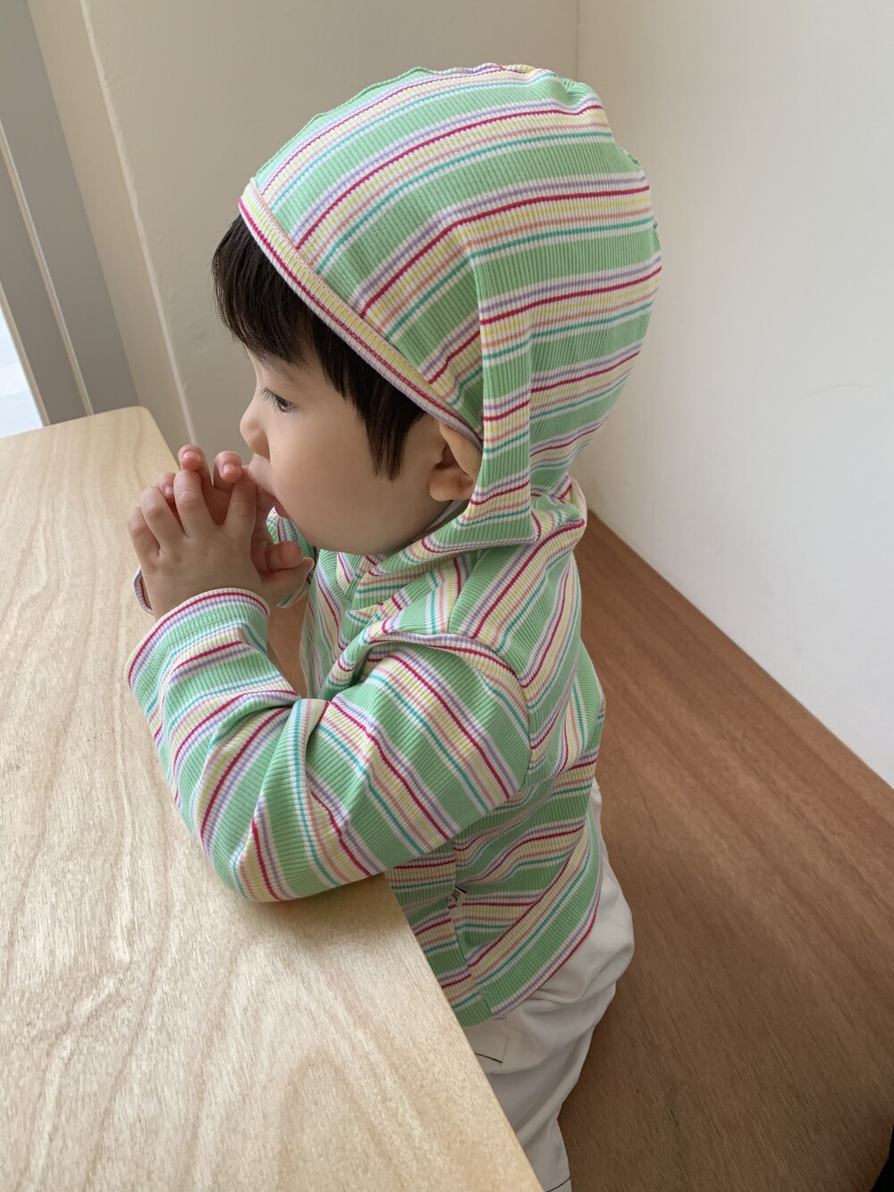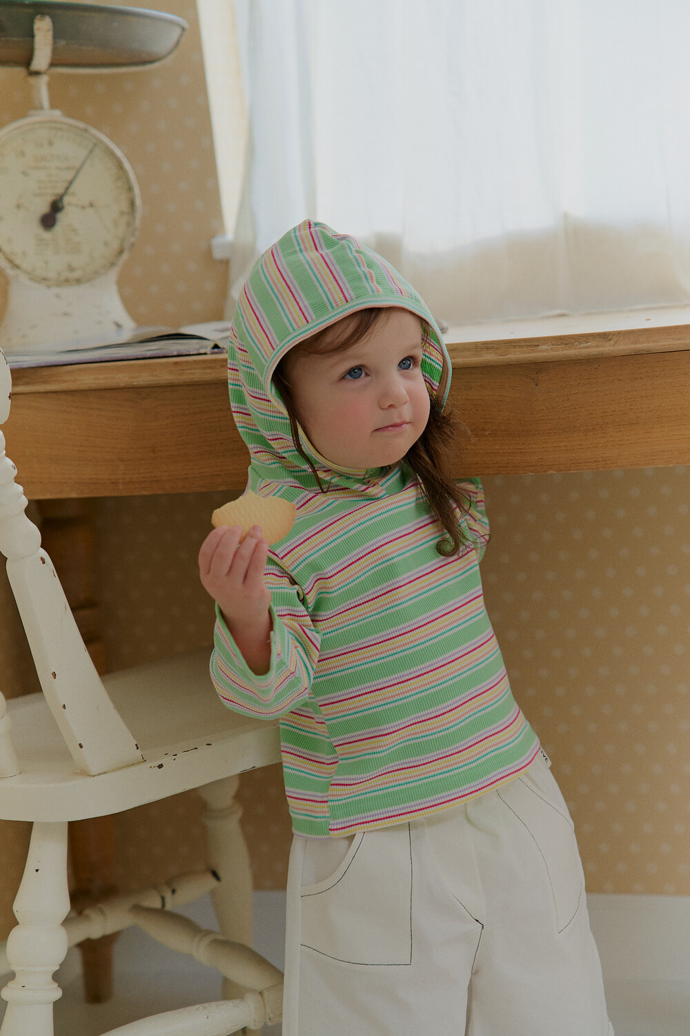 가벼운 후드는 아이 얼굴을 자연스럽게 감싸고