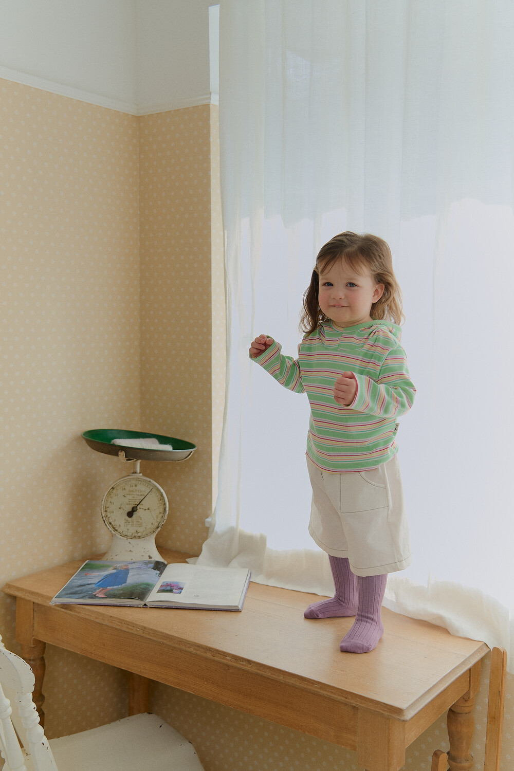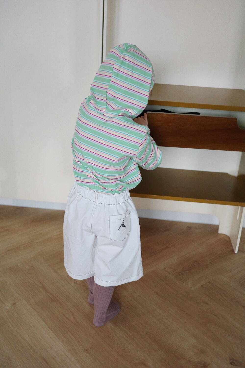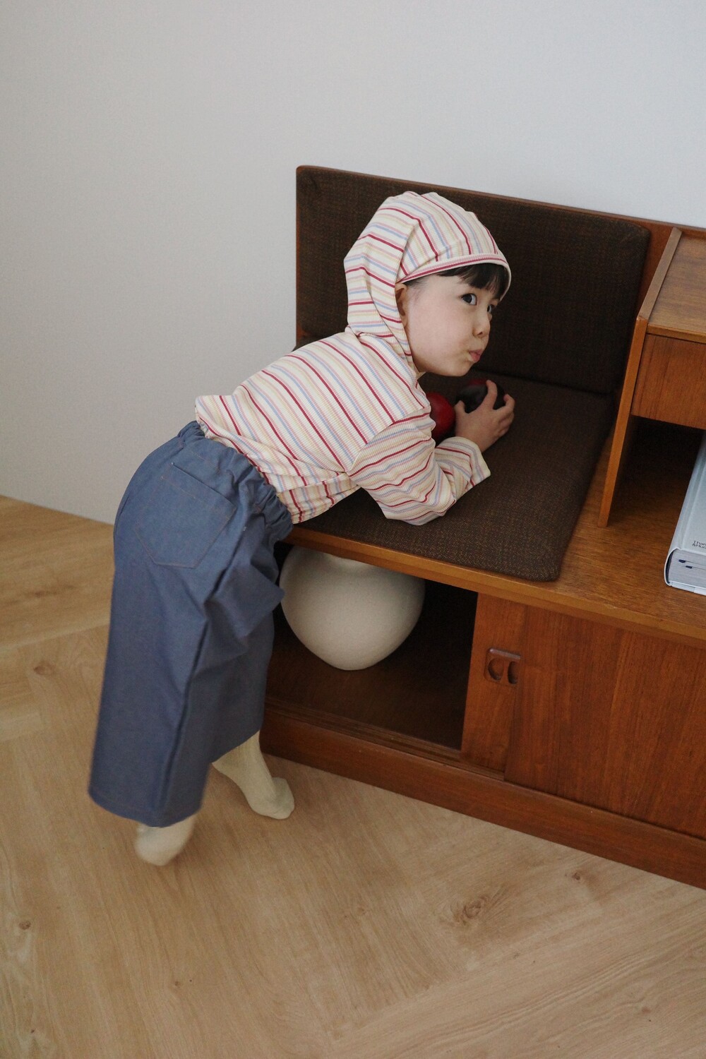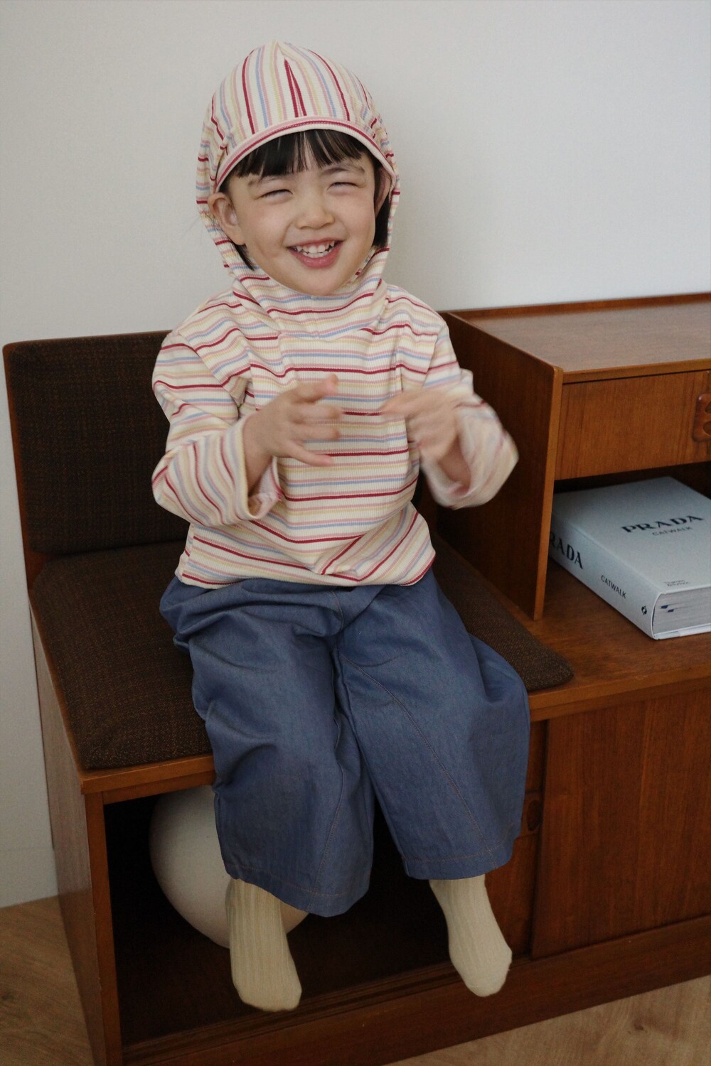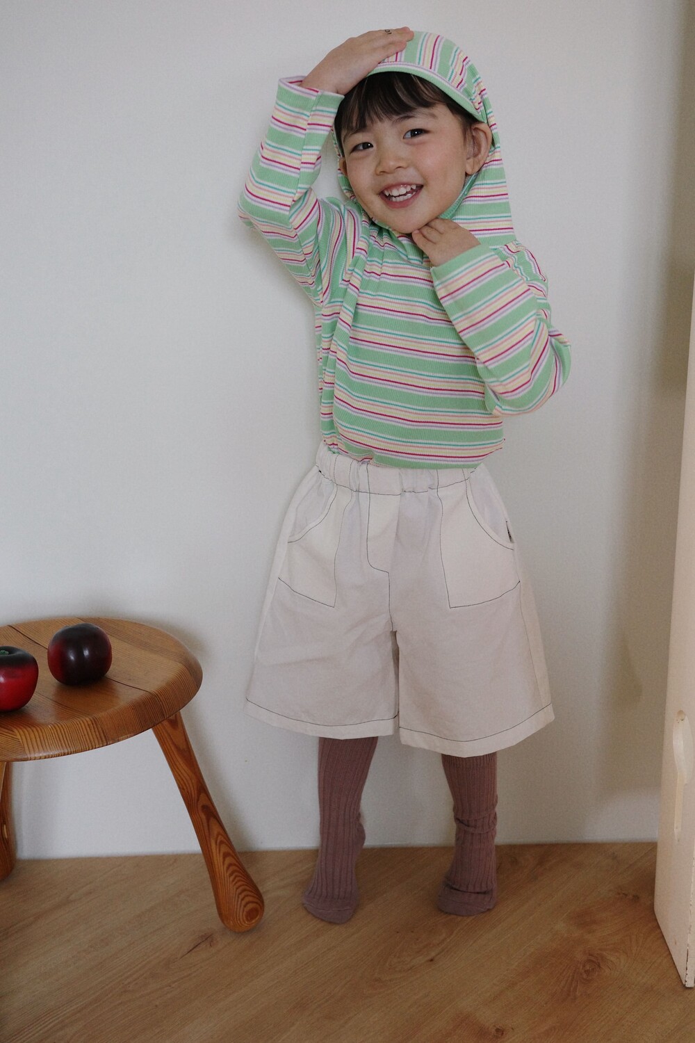 가벼운 후드는 아이 얼굴을 자연스럽게 감싸고