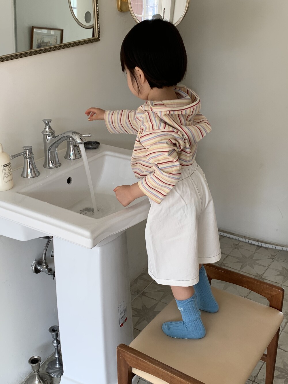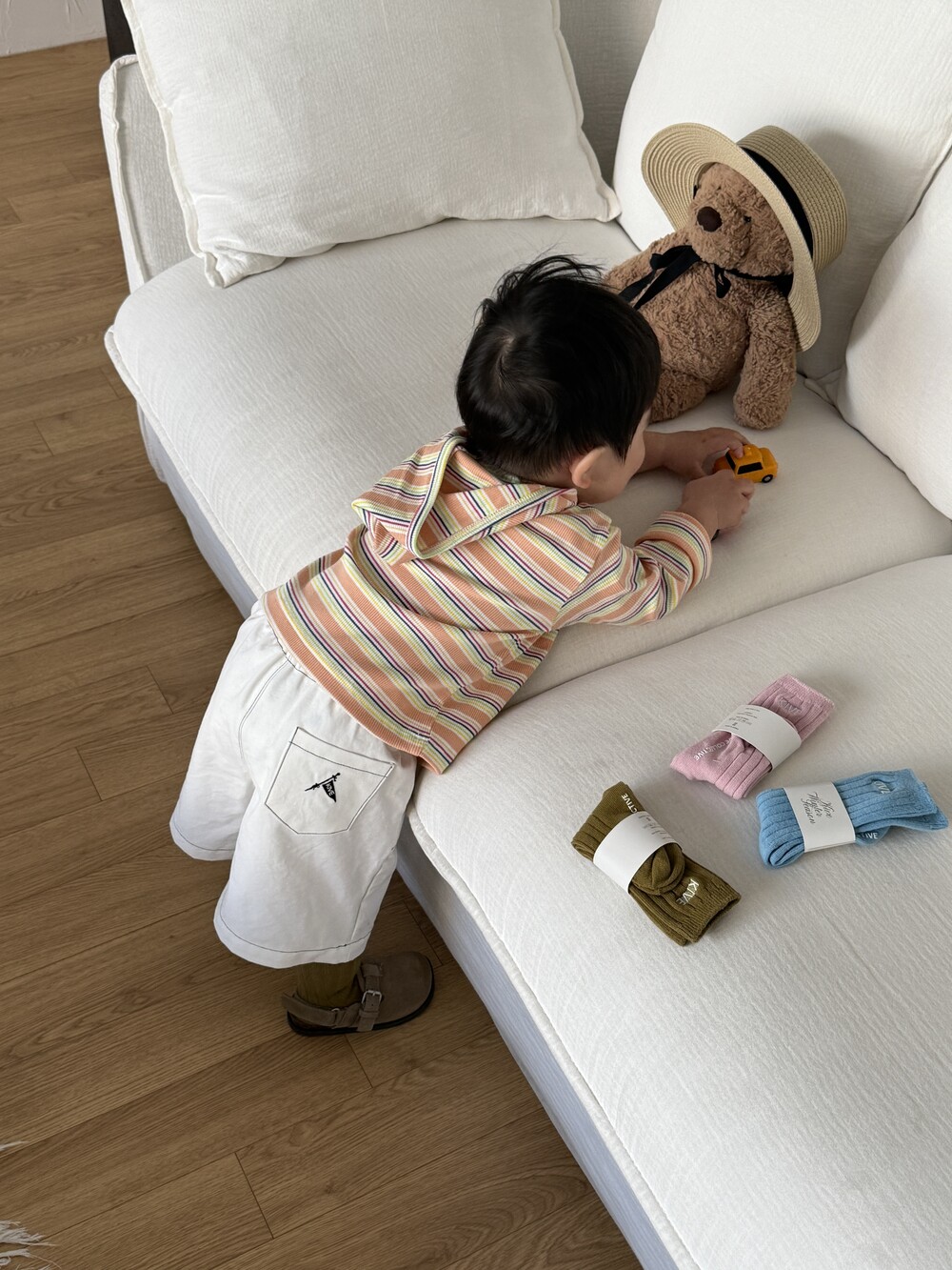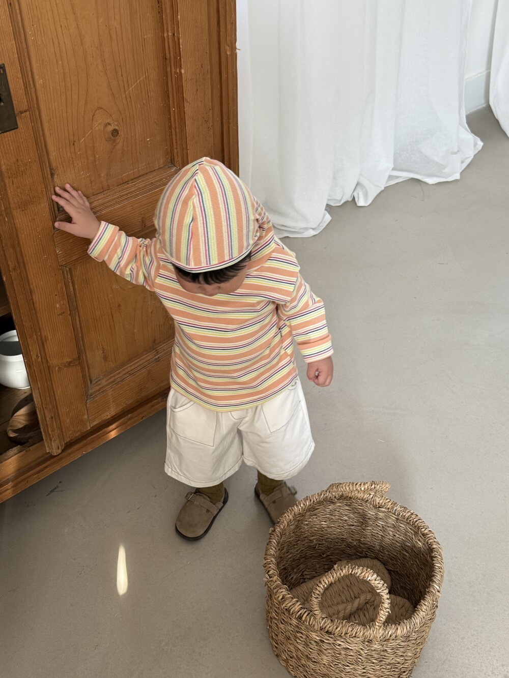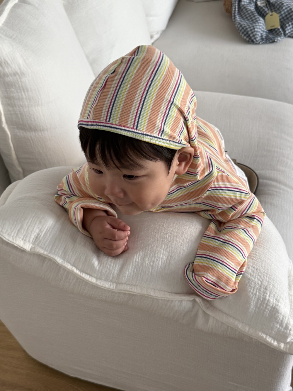 가벼운 후드는 아이 얼굴을 자연스럽게 감싸고