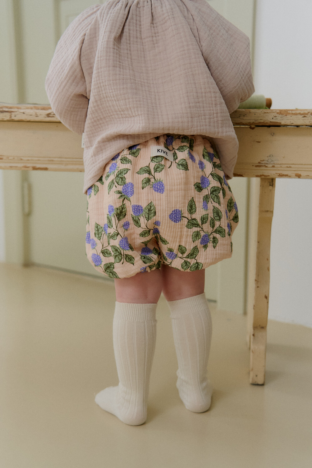 어디에도 볼 수 없는 KIVE만의 자체 제작 일러스트 원단으로 완성된 베리가든 블루머입니다.