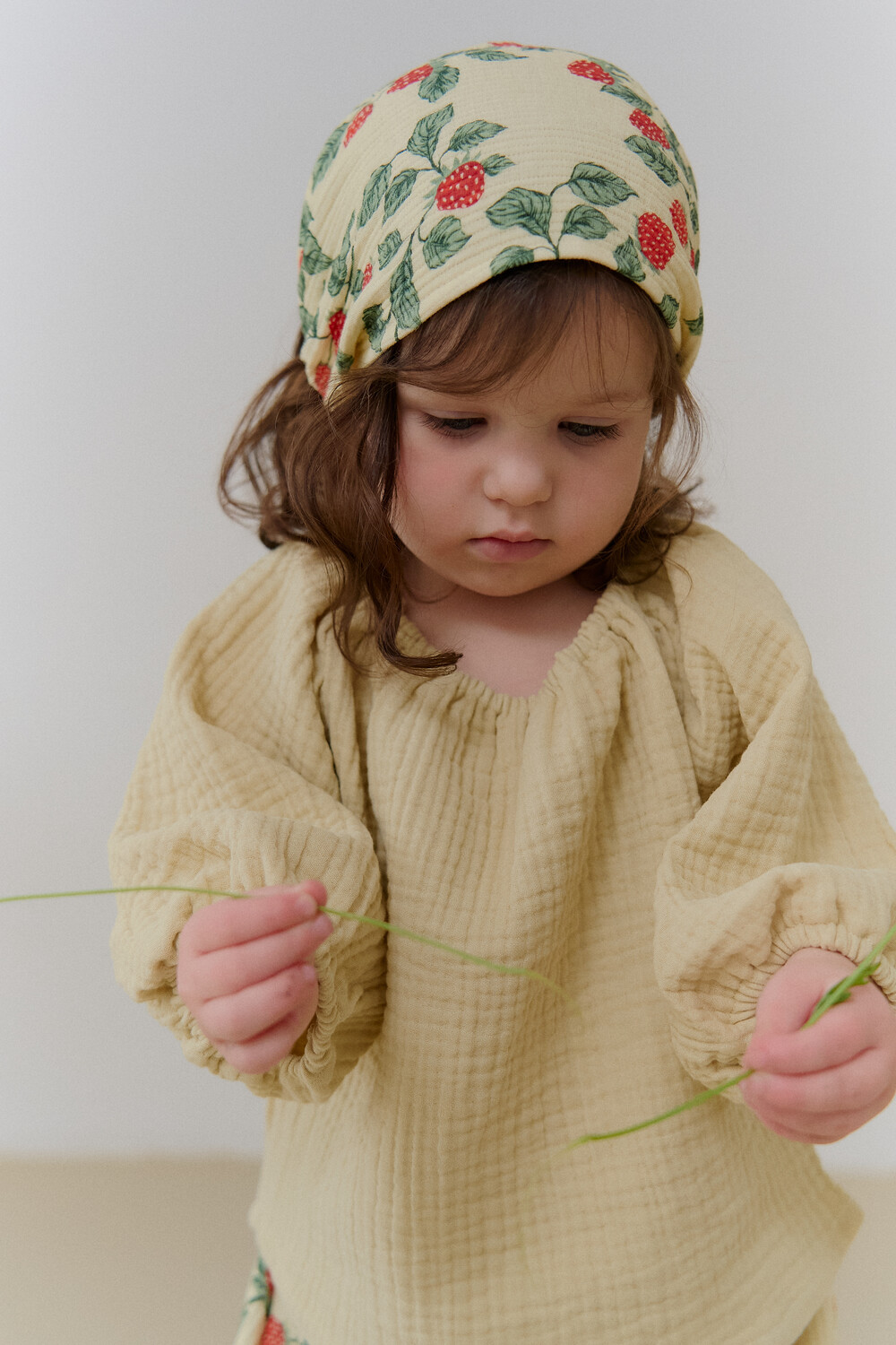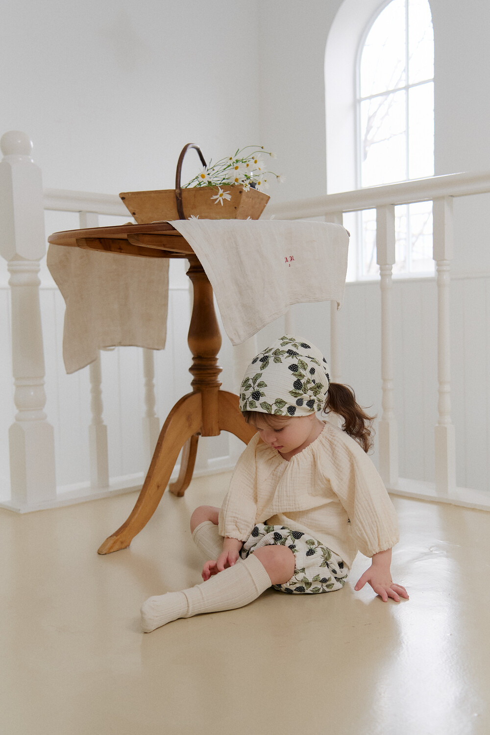어디에도 볼 수 없는 KIVE만의 자체 제작 일러스트 원단으로 완성된 베리가든 보넷입니다.