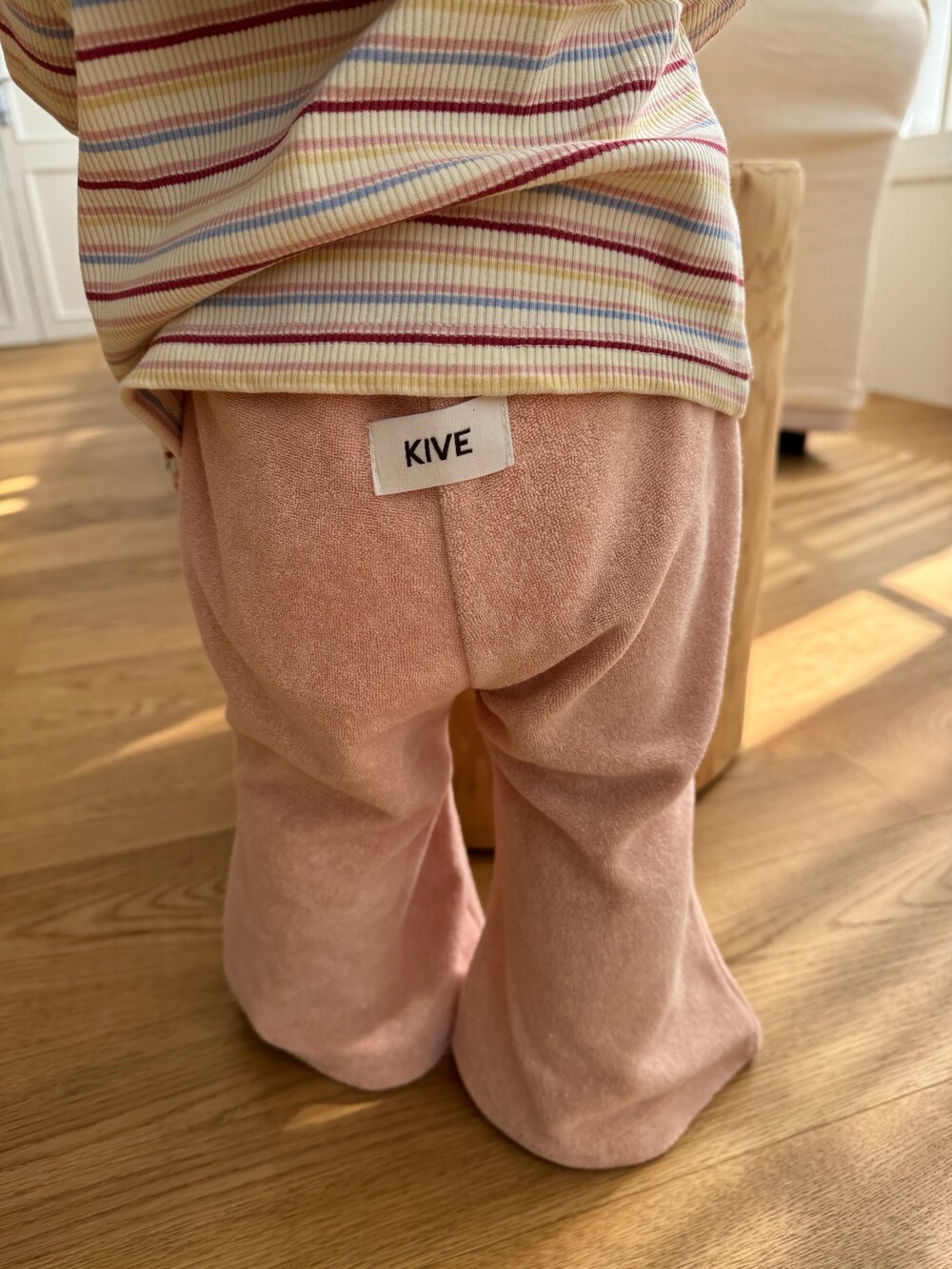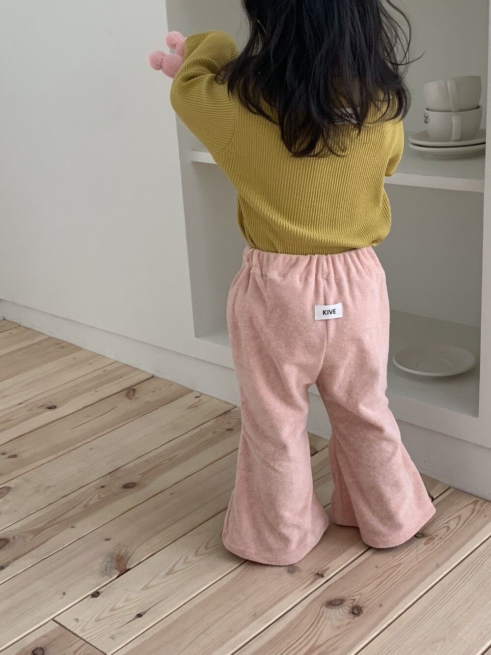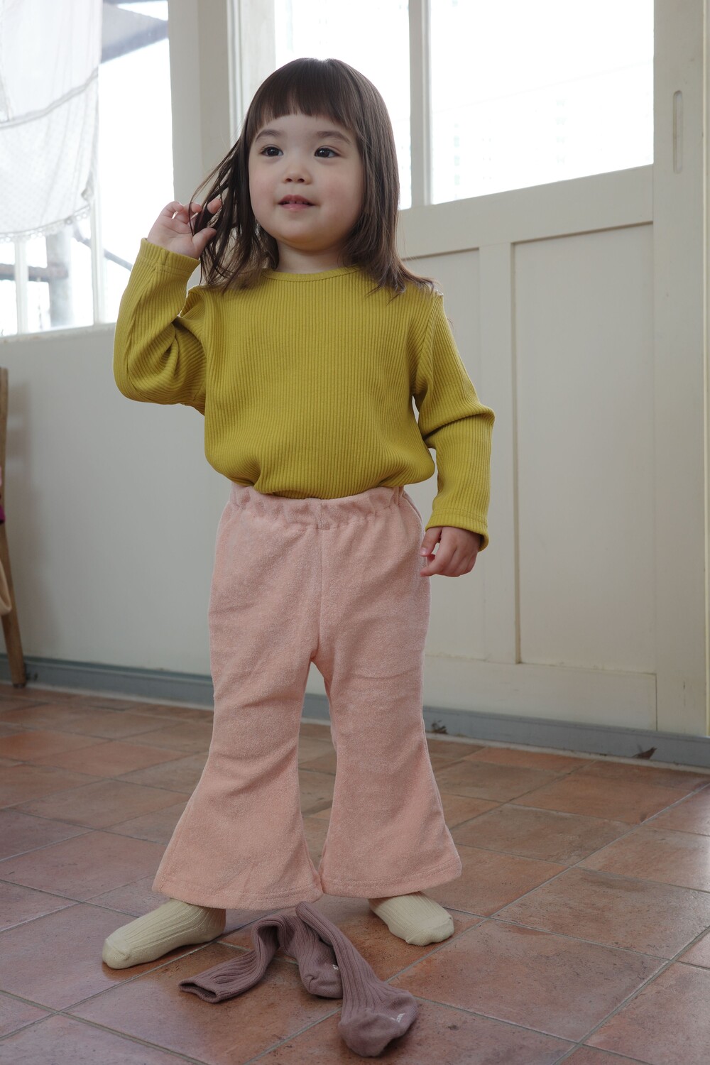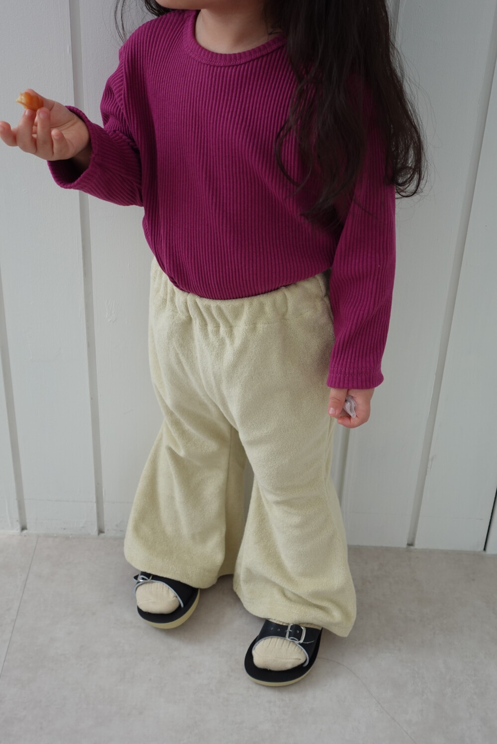 부드러운 테리 소재로 제작된 나팔 팬츠입니다.