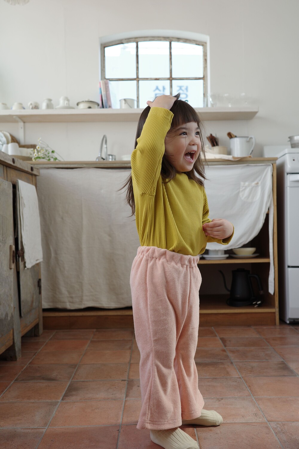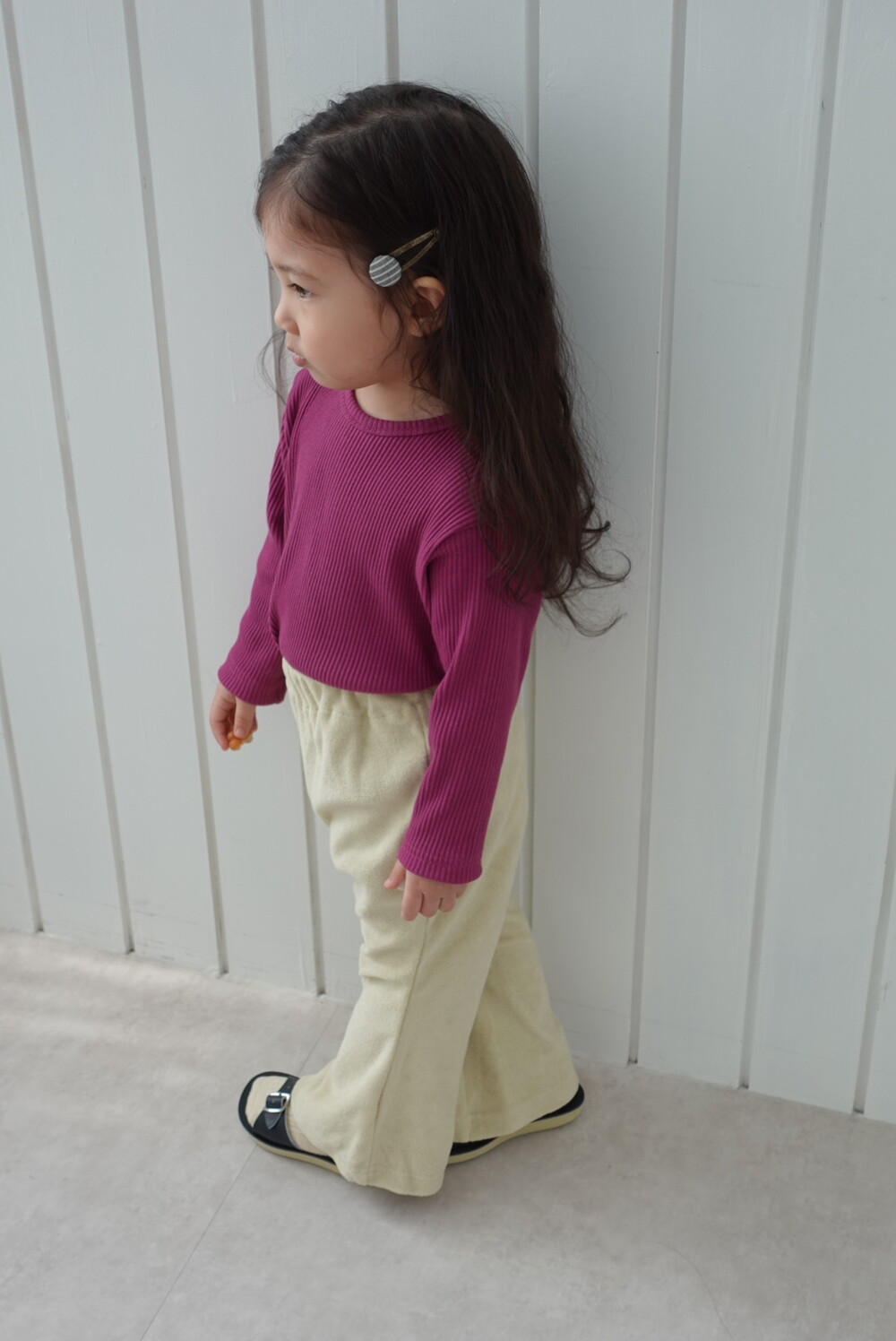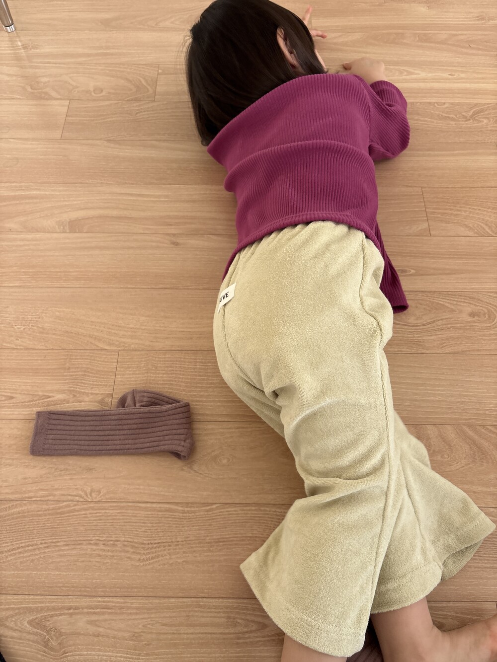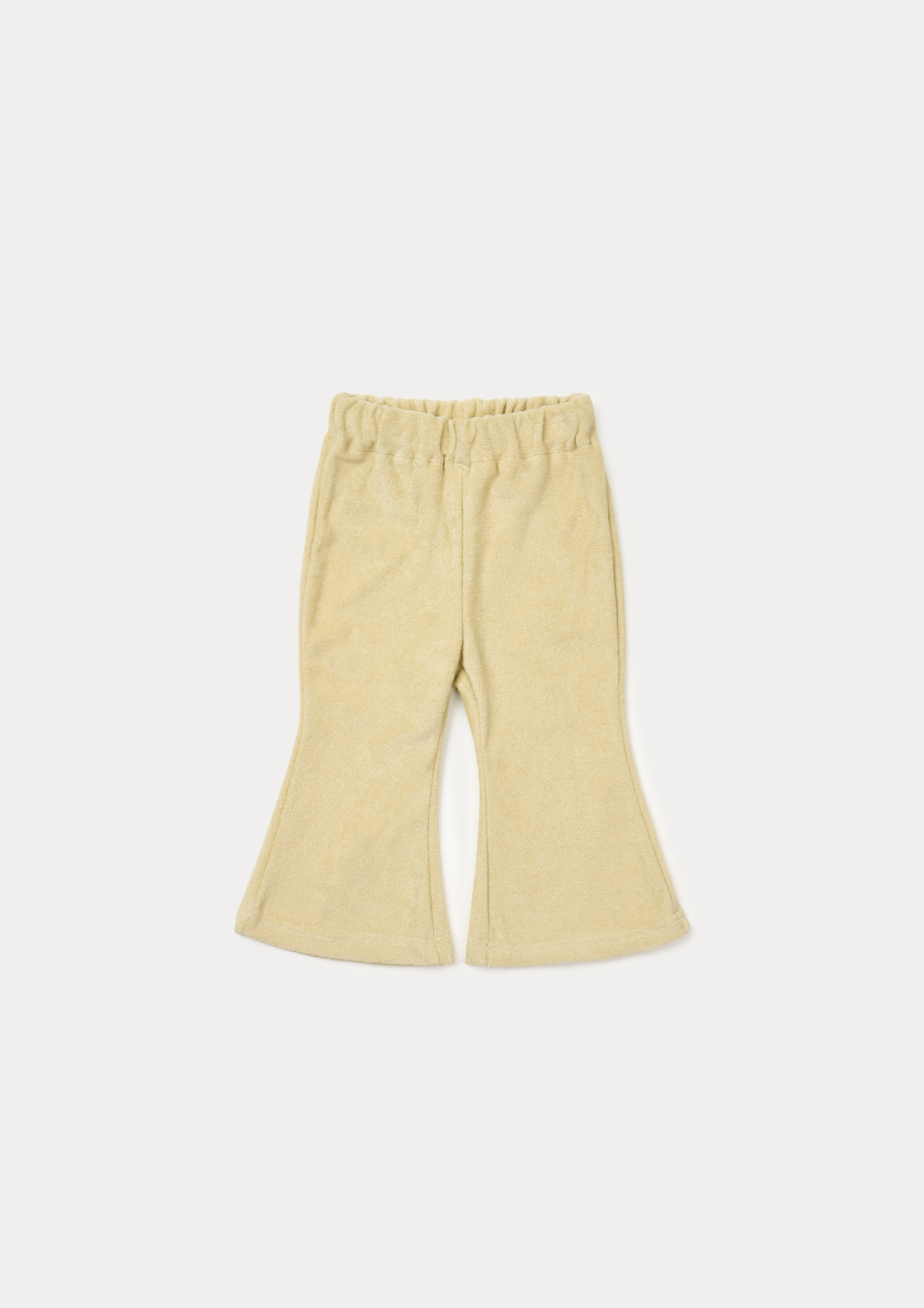 부드러운 테리 소재로 제작된 나팔 팬츠입니다.