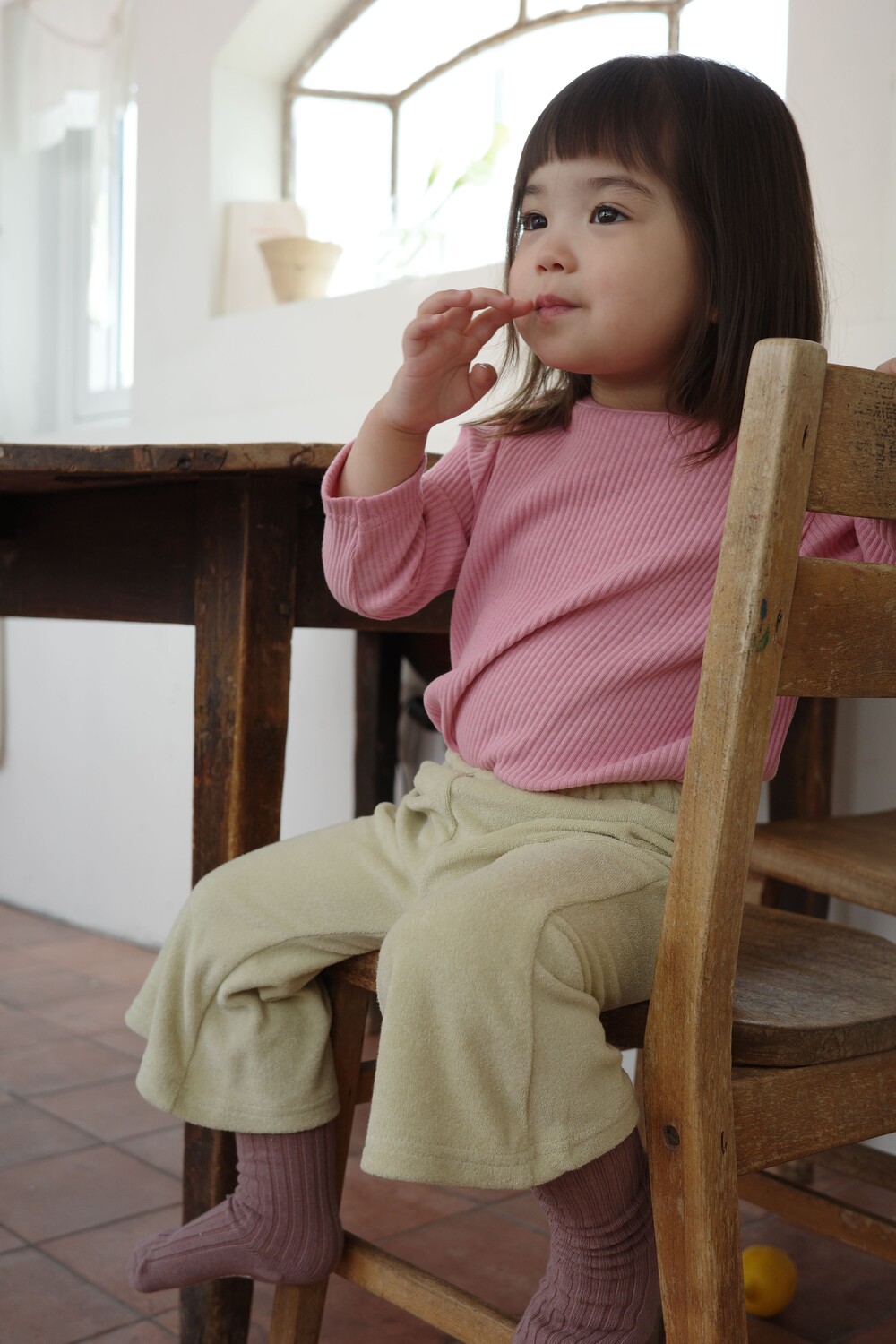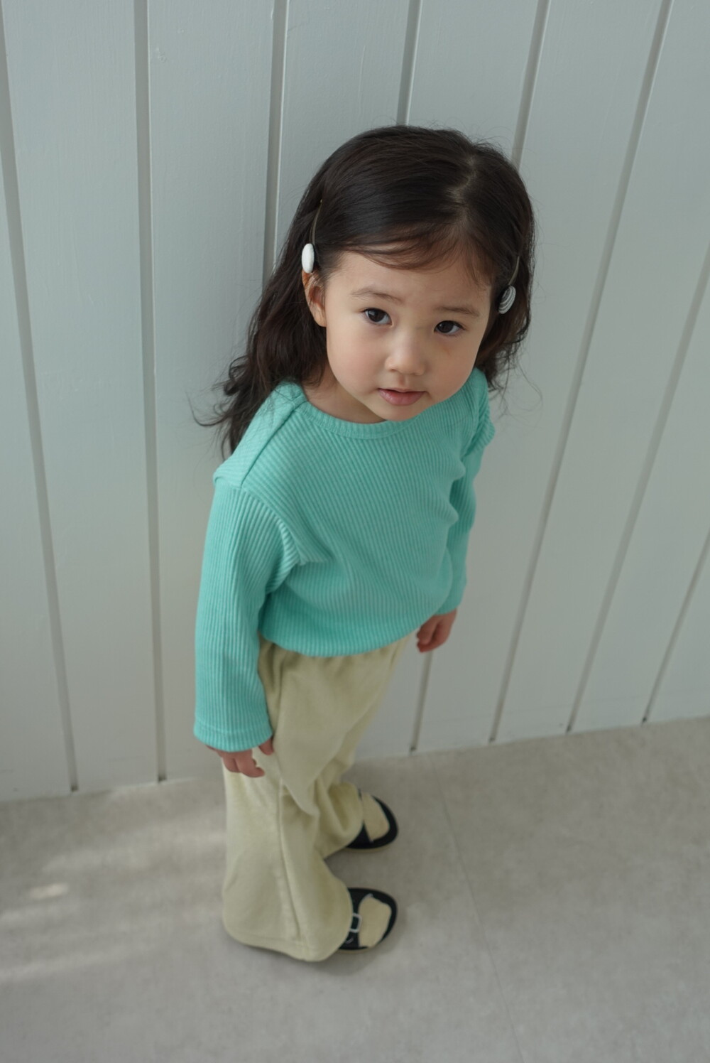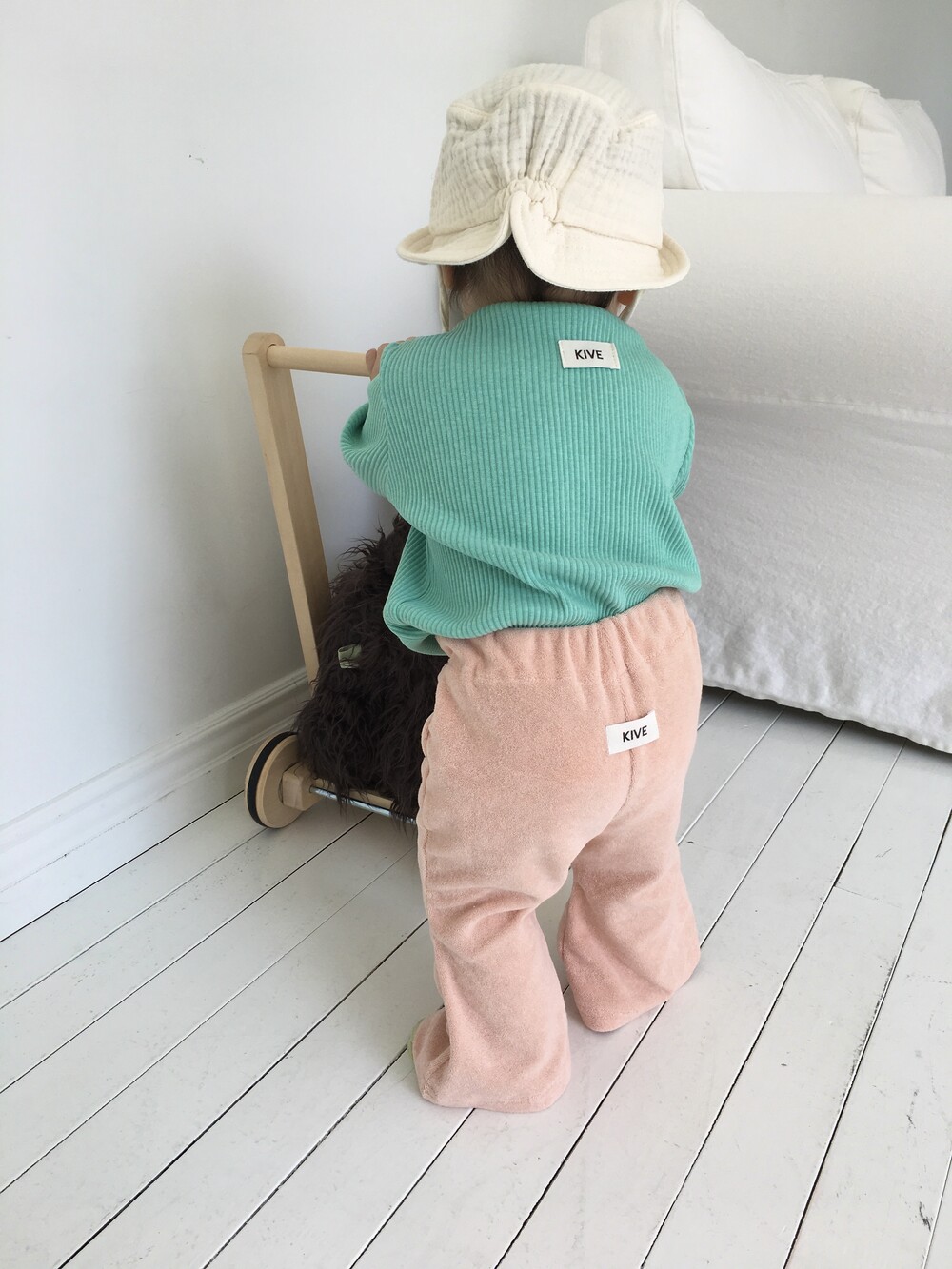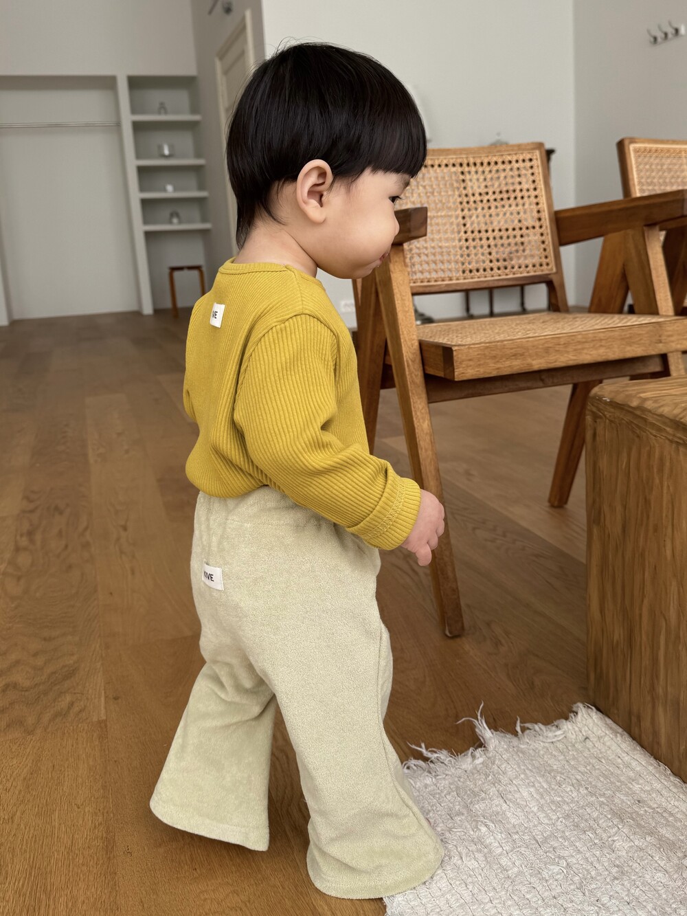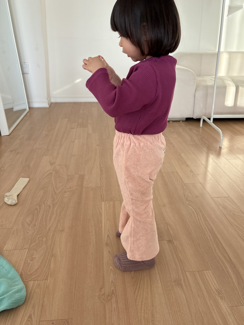 부드러운 테리 소재로 제작된 나팔 팬츠입니다.