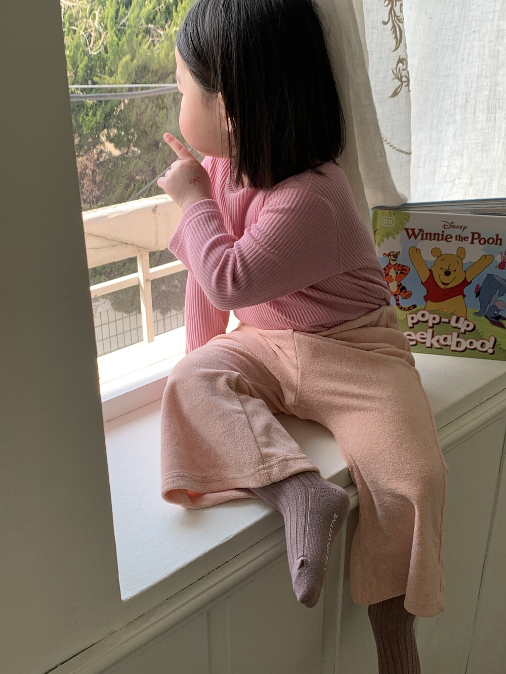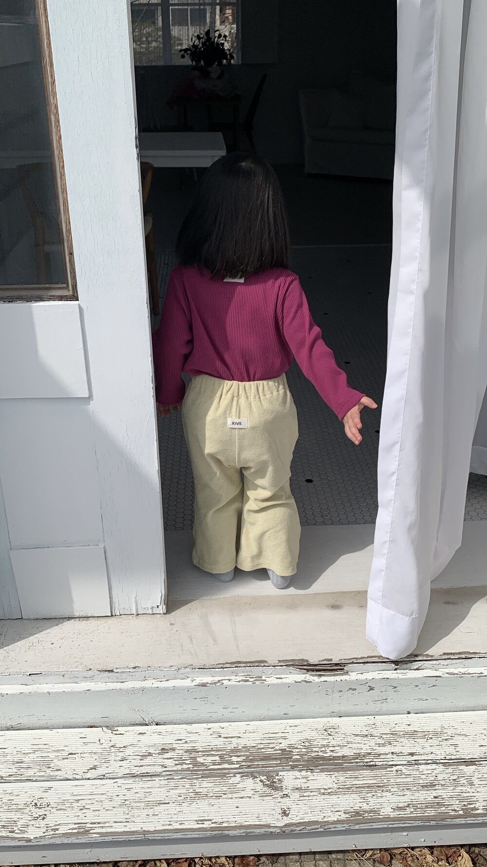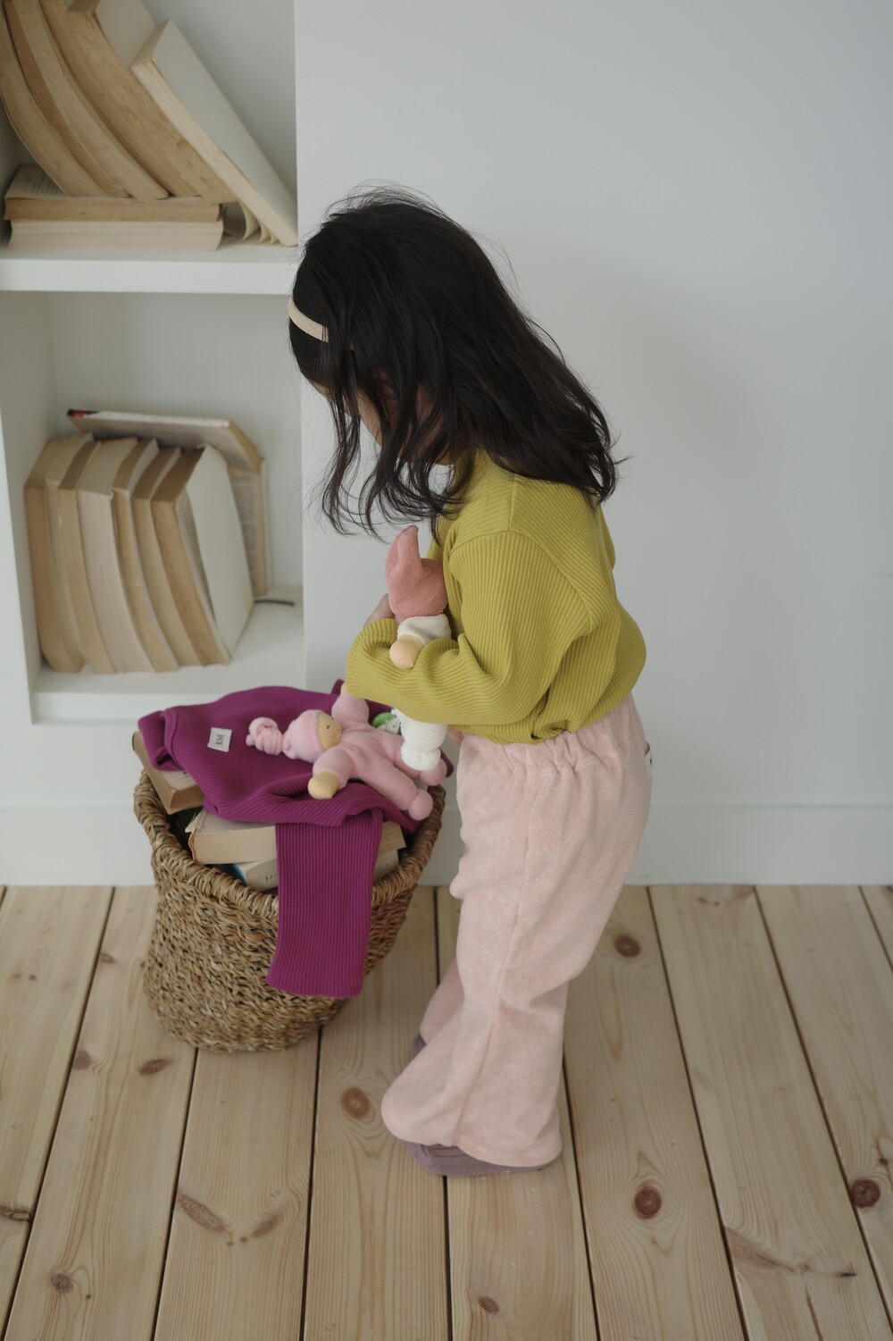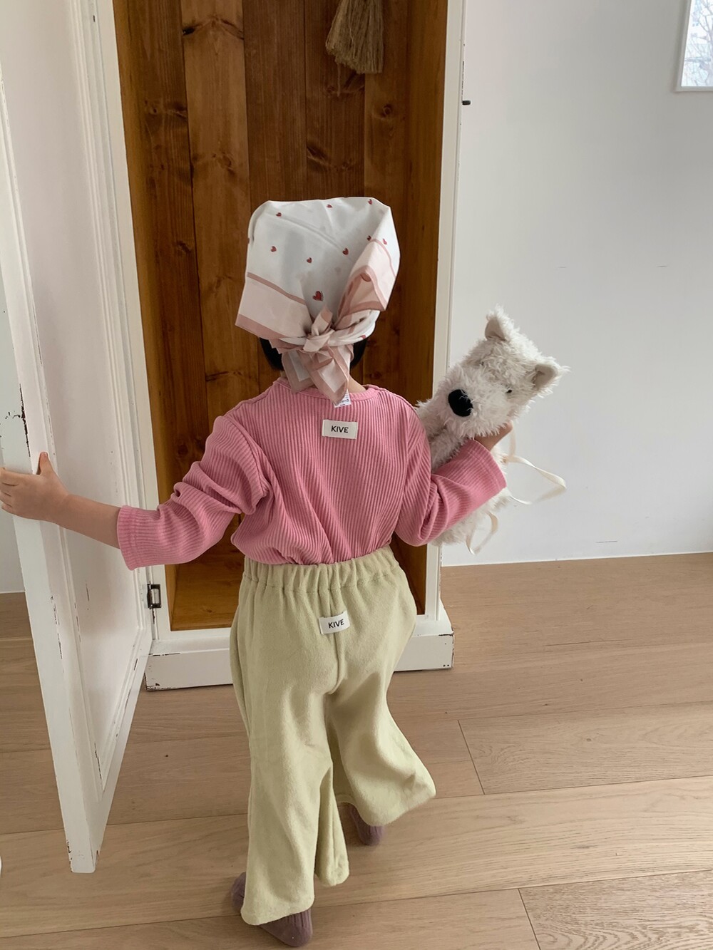 부드러운 테리 소재로 제작된 나팔 팬츠입니다.