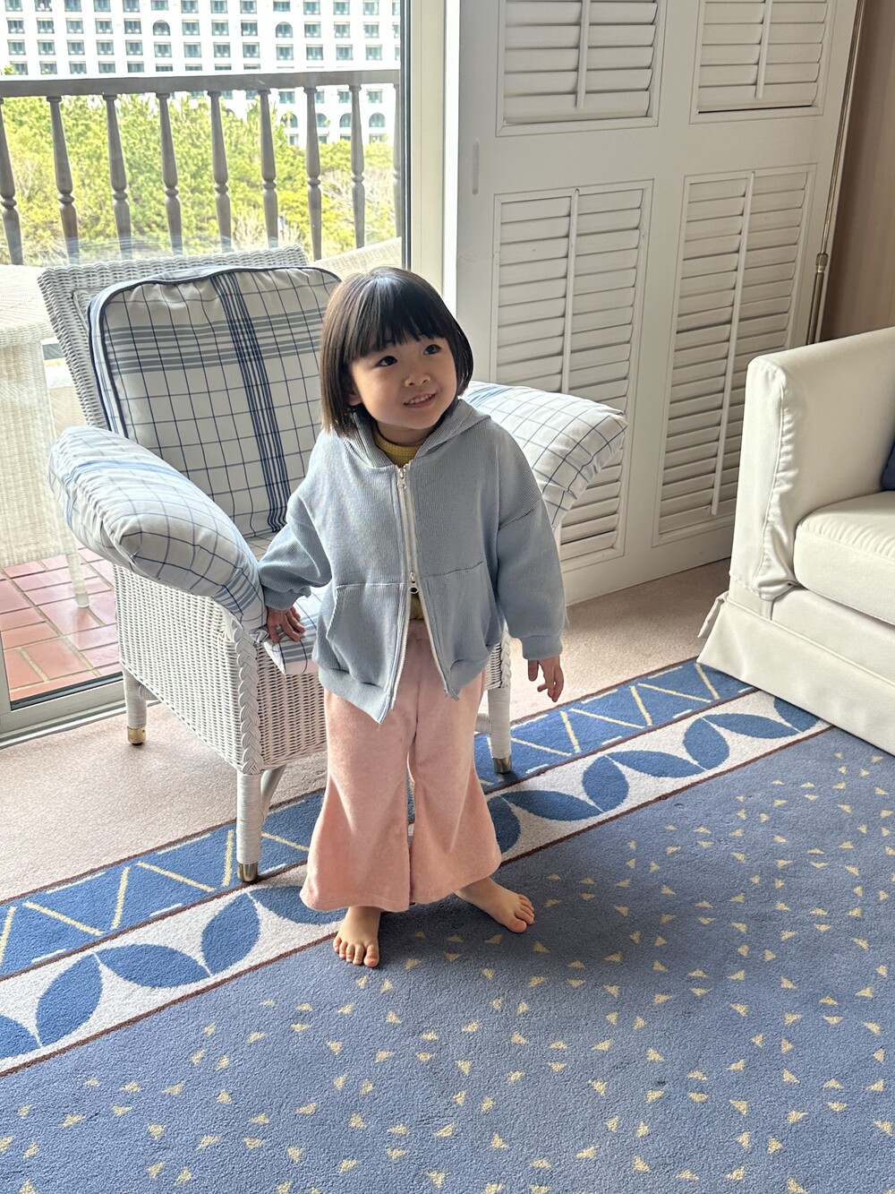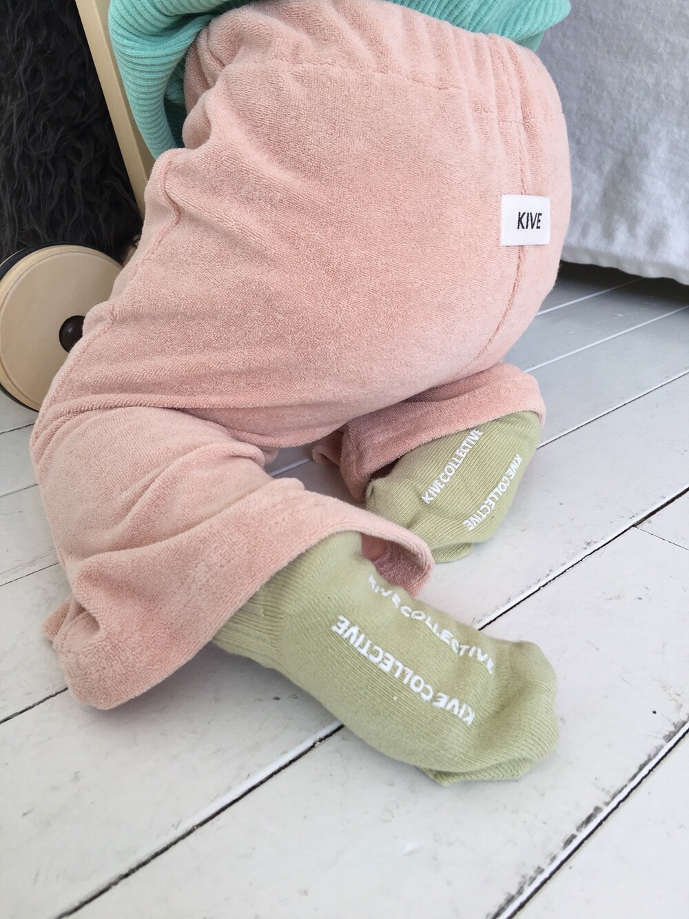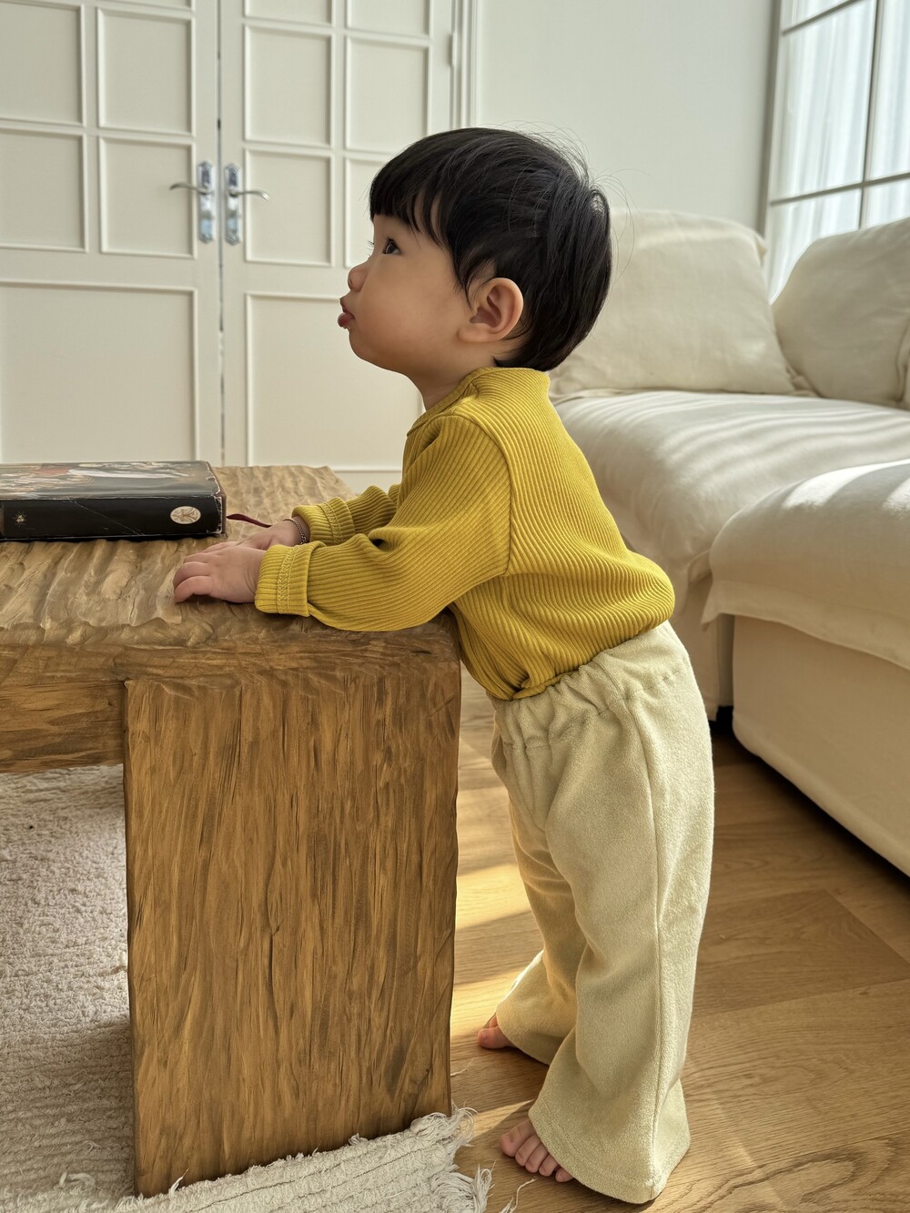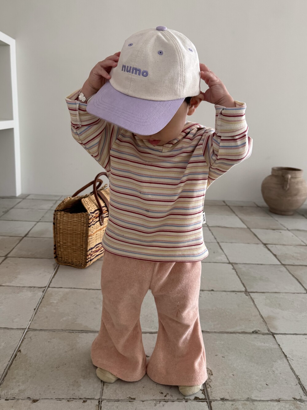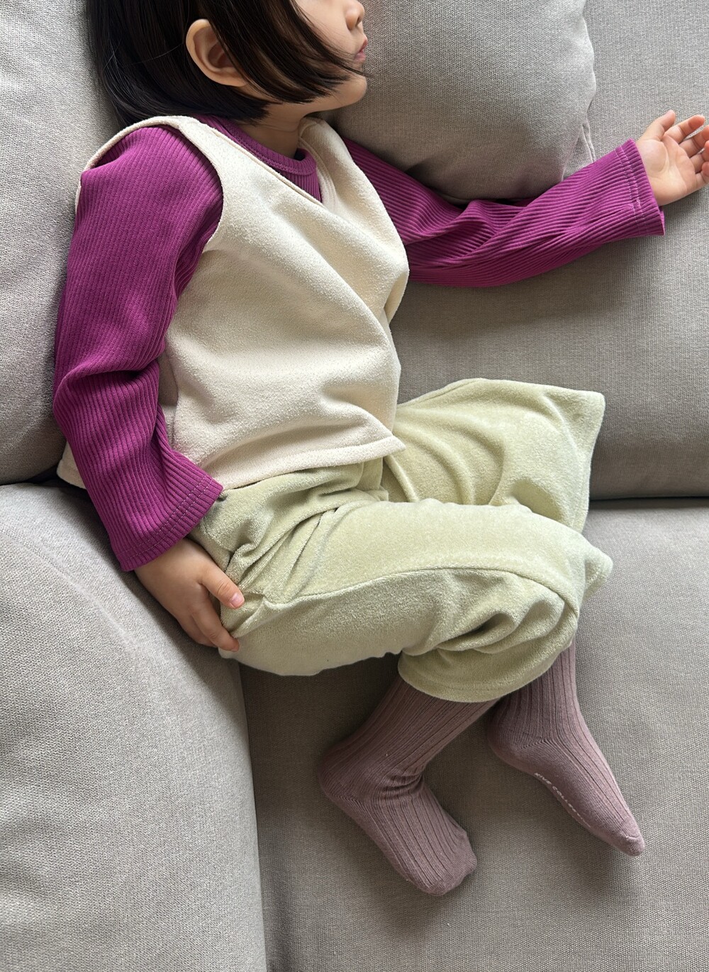 부드러운 테리 소재로 제작된 나팔 팬츠입니다.