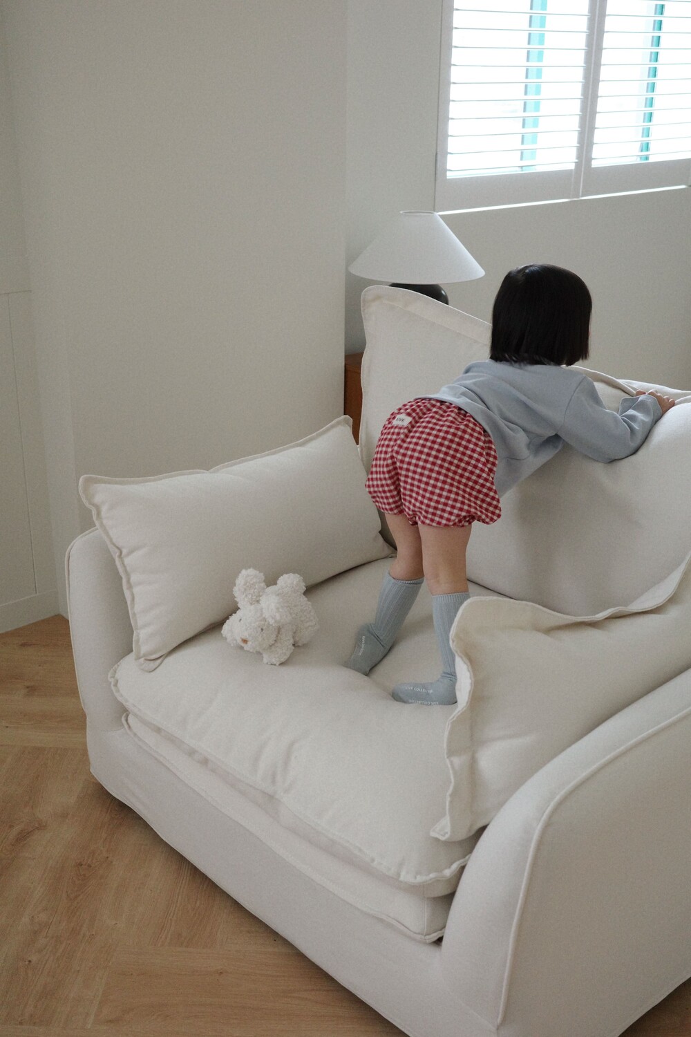 허리와 다리 라인을 부드럽게 잡아줘 입었을 때 자연스럽게 볼륨이 살아나고 기저귀 위에 입혀도 어색하지 않아요.