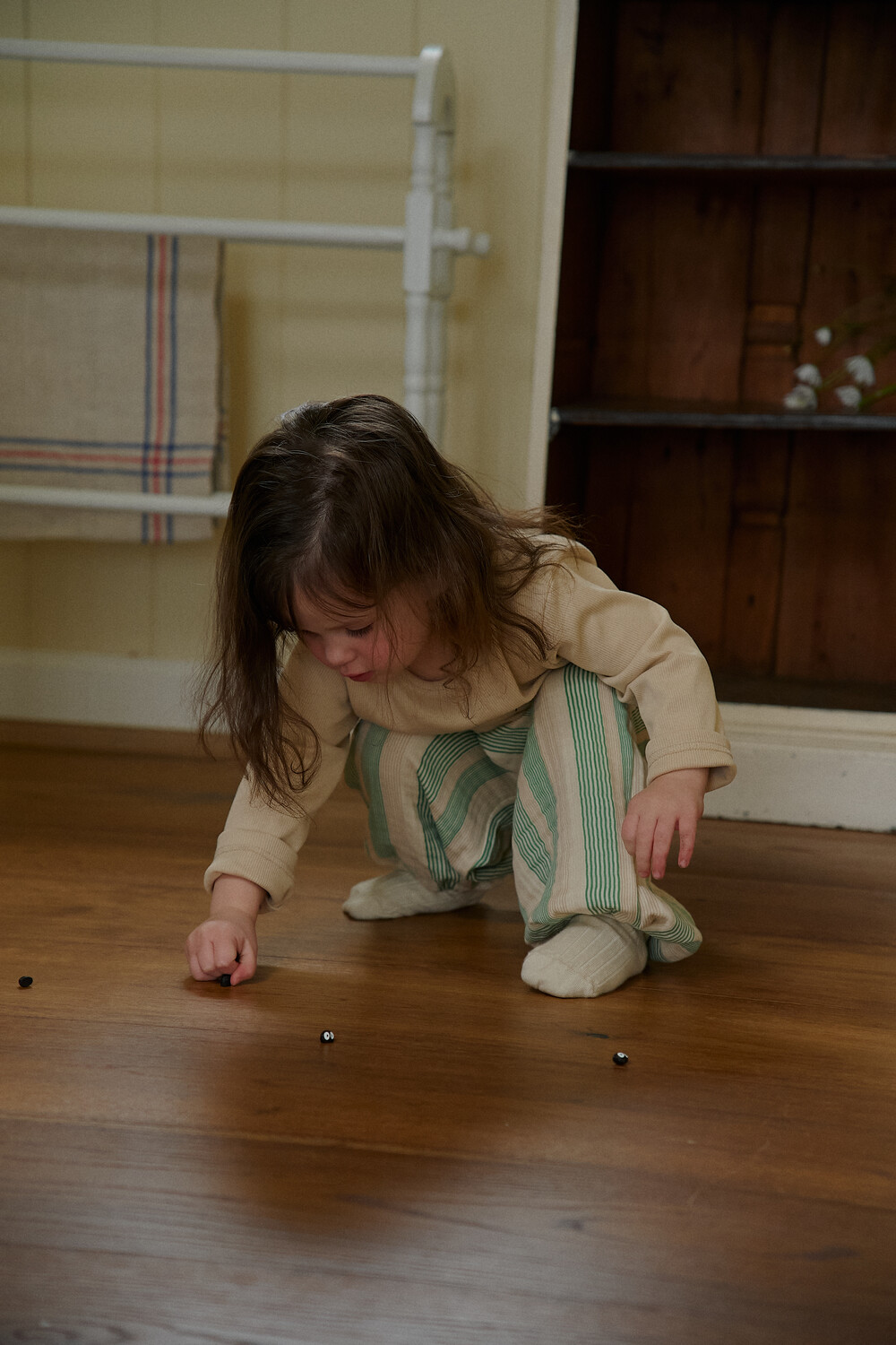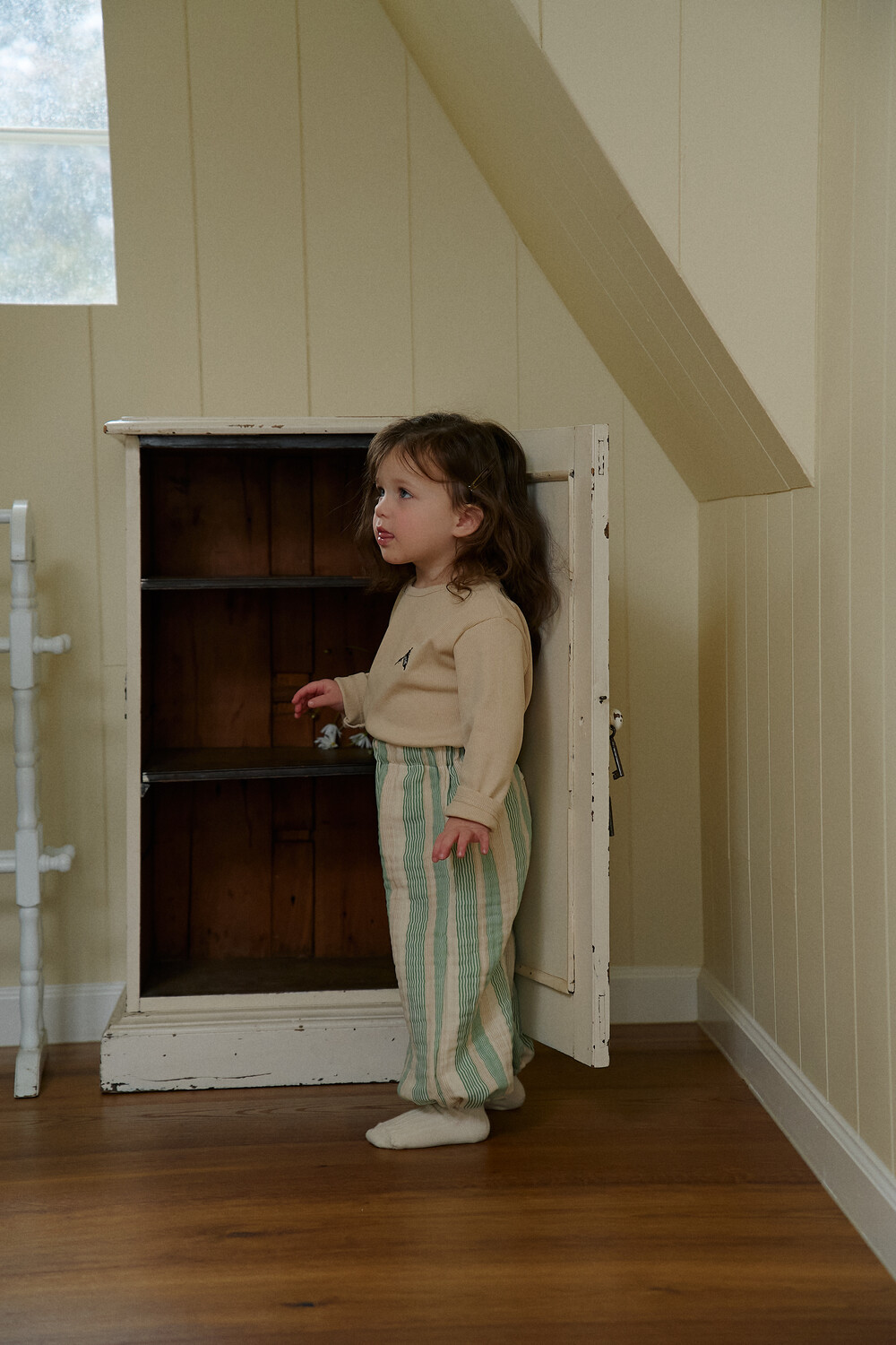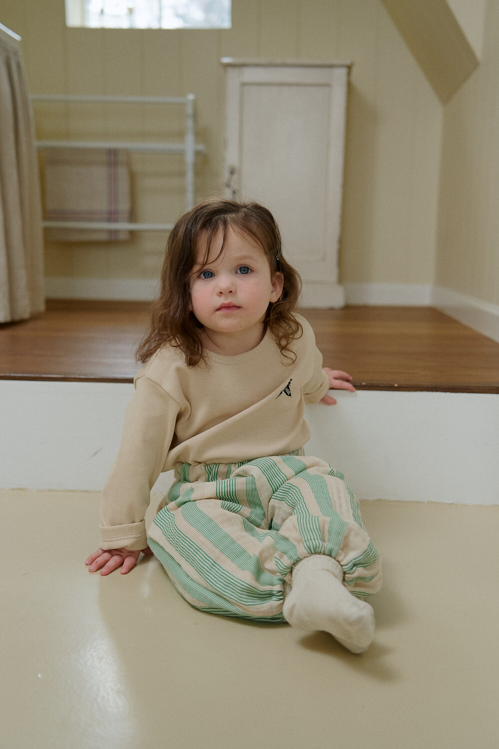 옐로우, 그린 스트라이프 컬러감으로 심플한 상의와 매치해도 충분히 포인트가 되어줍니다.