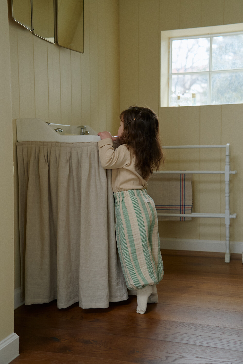 부드러운 4중 거즈 원단으로 제작되어 피부에 닿는 감촉이 유독 편안한 사계절용 팬츠입니다.