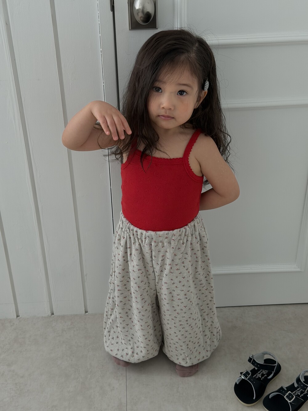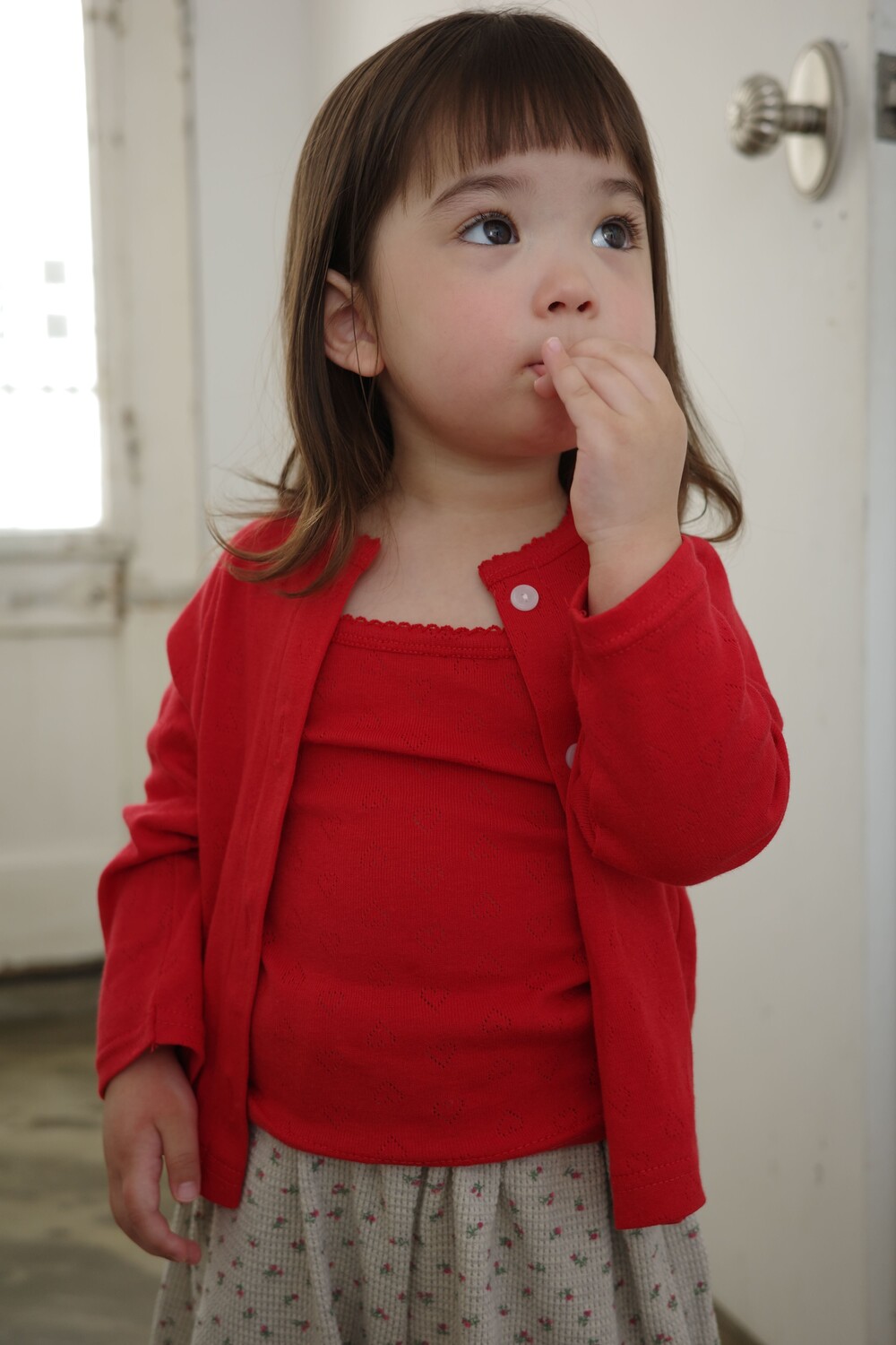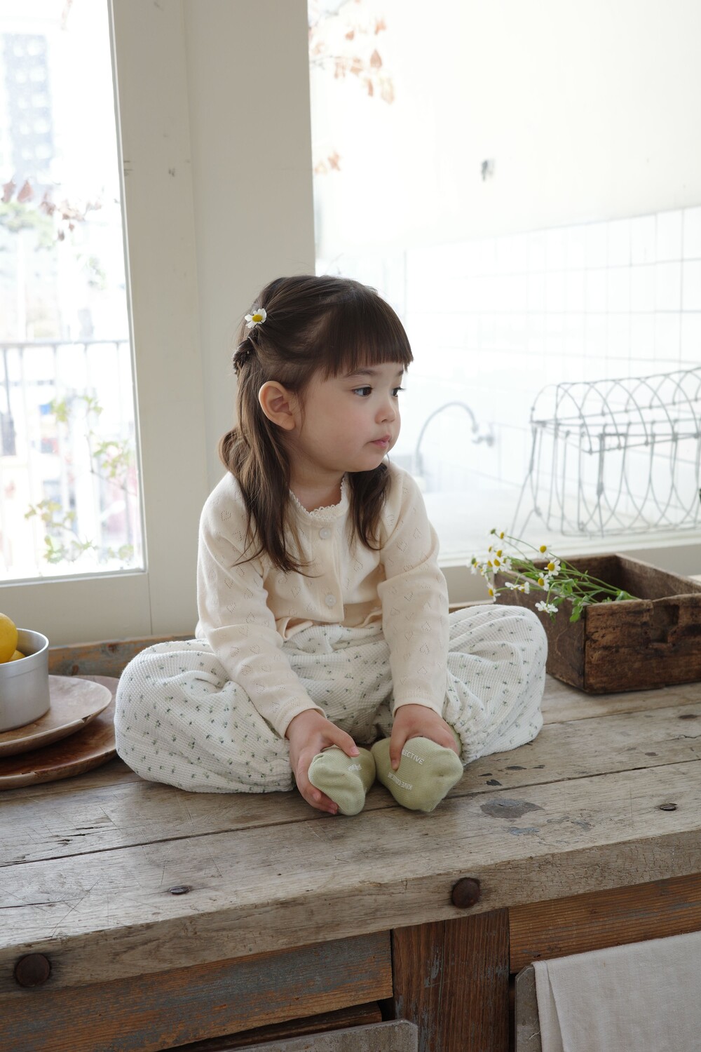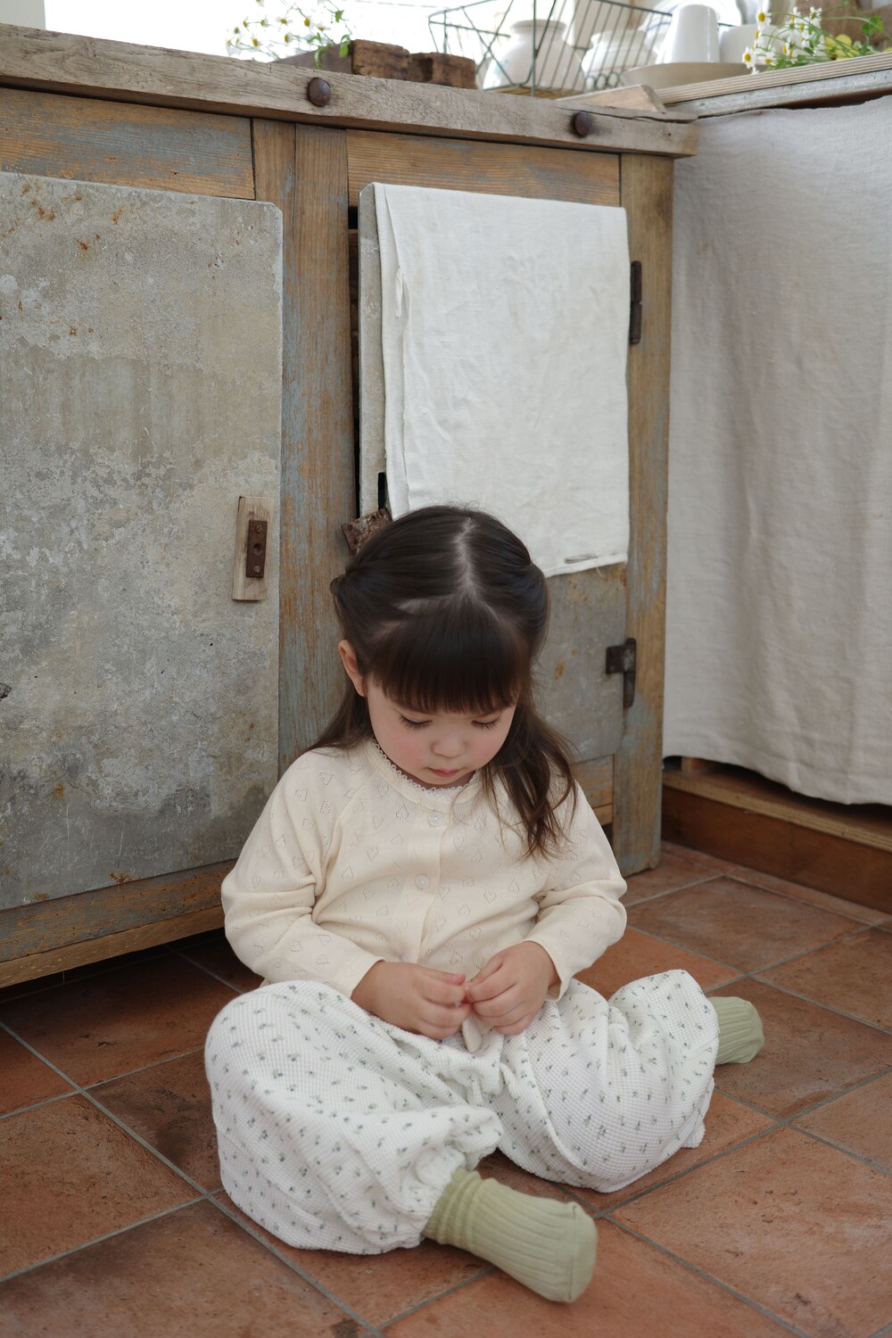 봄·여름 시즌 데일리룩으로 가볍게 즐기기 좋은 아일렛 가디건 & 나시 세트입니다.